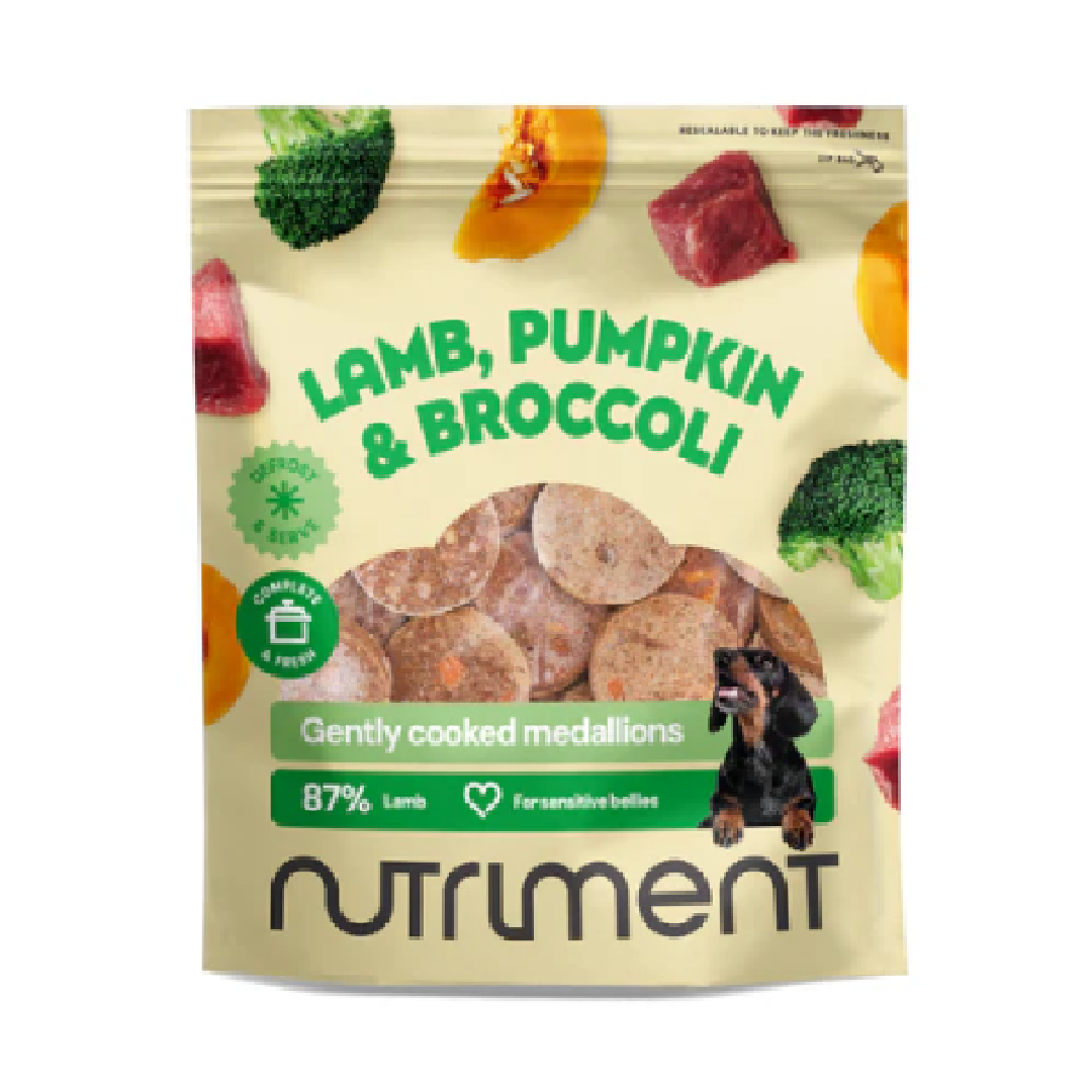 A delicious, gently cooked dog food made from tender lamb, hearty pumpkin, and tender broccoli. This vitamin-rich gentle dog food recipe provides perfectly balanced ingredients in a delicious meal. Perfect for sensitive stomachs – easily digestible and grain-free.