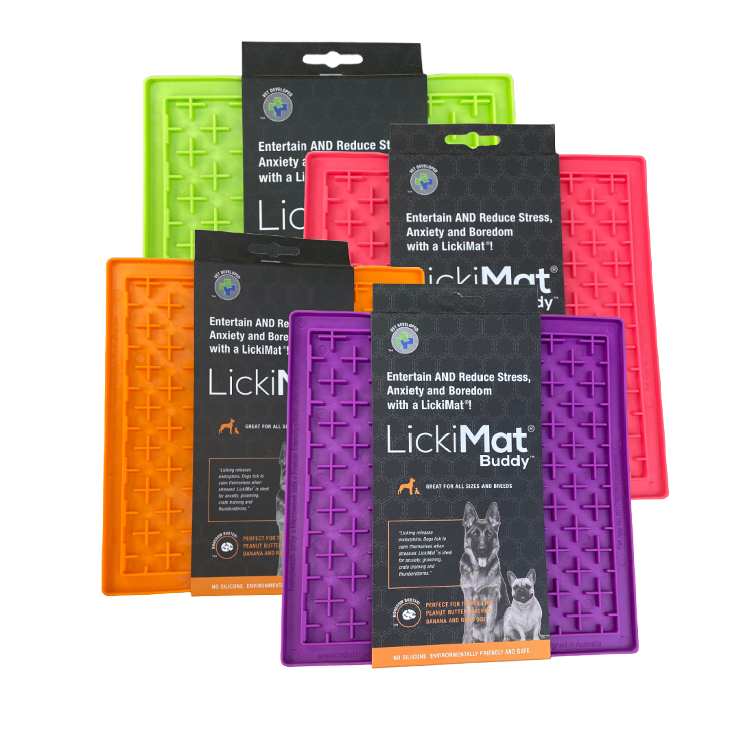 Most pet owners lead busy lives and feel guilty leaving their pets home alone for many hours. Lickimat™ Boredom Busters are designed to enhance your pet’s environment as well as benefiting their health. Lickimats are designed as tasty boredom busters for your cat or dog. By spreading your pet's favourite soft treat over the surface, you create a tasty fun game with them having seek out every morsel with their tongue. Freeze treats in summer for refreshing longer lasting entertainment.