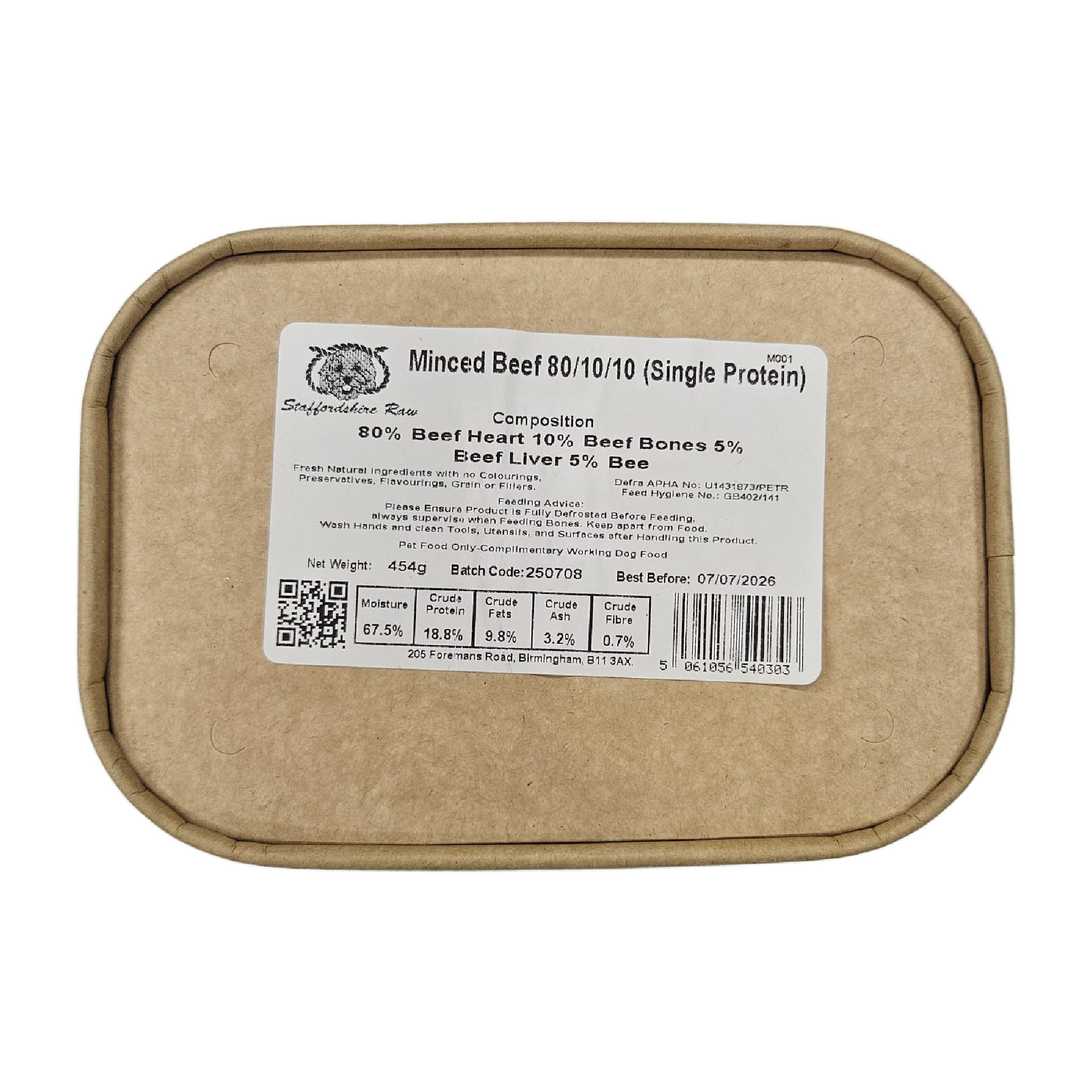 Composition: 80% Beef Heart, 10% Beef bones, 5% Beef Liver, 5% Beef Kidney.